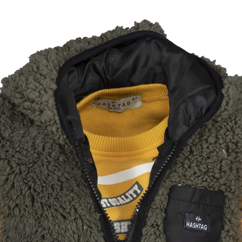 Ensemble pull + doudoune sans manche Hashtag jaune/gris Garçon