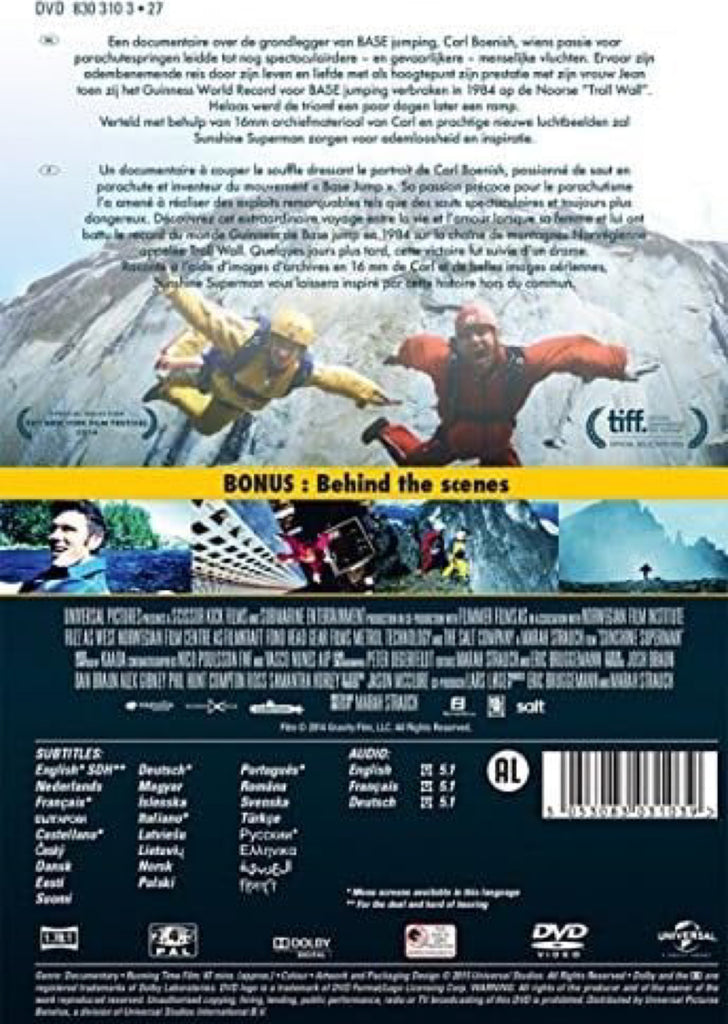 Plongez au coeur de cette expérience incroyable et vivez des moments intenses, comme en 1984 où Carl et sa femme battent le record du monde de Base Jump sur le Troll Wall, une chaîne de montagnes norvégiennes. Une victoire qui, quelques jours plus tard, fut suivie d'un drame. Raconté à l'aide d'images d'archives en 16mm et de magnifiques clichés aériens, Sunshine Superman revient sur cette histoire hors du commun.