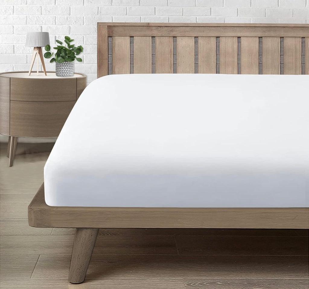 Drap-housse blanc 140×190 cm +25 cm – 57 fils – 100 % coton