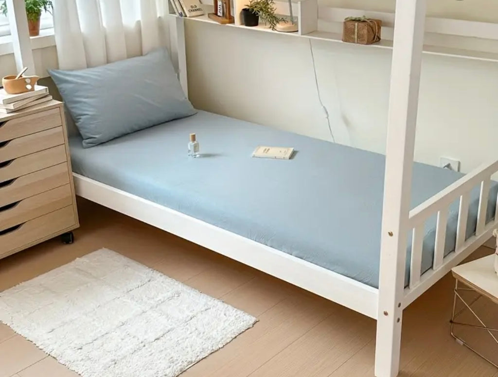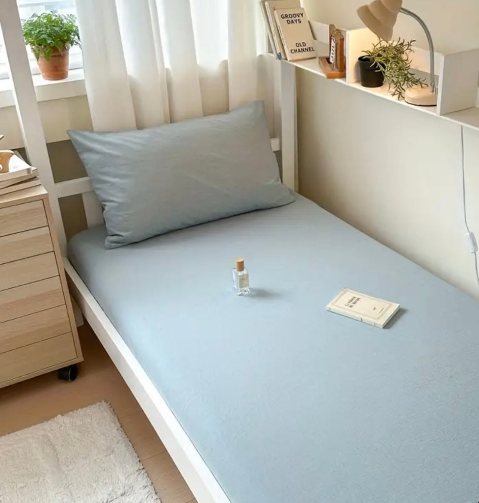 Ce drap-housse bleu ciel 90×190 cm +25 cm assure un maintien parfait du matelas tout en offrant un fini soigné. Confectionné en 100 % coton avec une densité de 57 fils, il allie douceur, confort et résistance. Sa conception respirante et facile d’entretien en fait un choix idéal pour un linge de lit durable et agréable au quotidien.