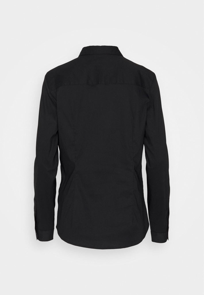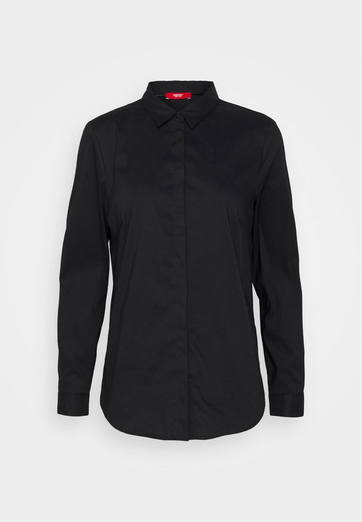Chemise Esprit pour femme. Couleur noire au style élégant et intemporel. Coupe ajustée offrant confort et aisance. Tissu souple et agréable, idéal pour un look professionnel ou décontracté.