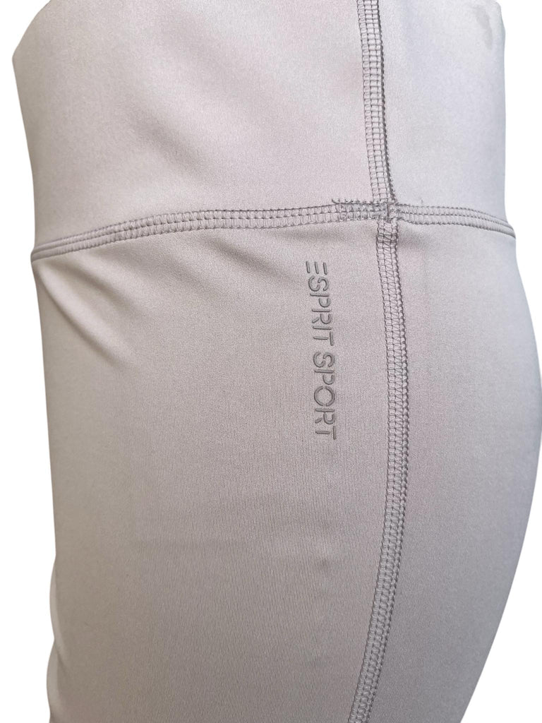 Legging Esprit Sport pour femme de couleur beige. Coupe ajustée et confortable, parfait pour le sport ou les activités quotidiennes. Tissu extensible offrant un excellent maintien et une grande liberté de mouvement. Caractéristiques : séchage rapide et respirant.