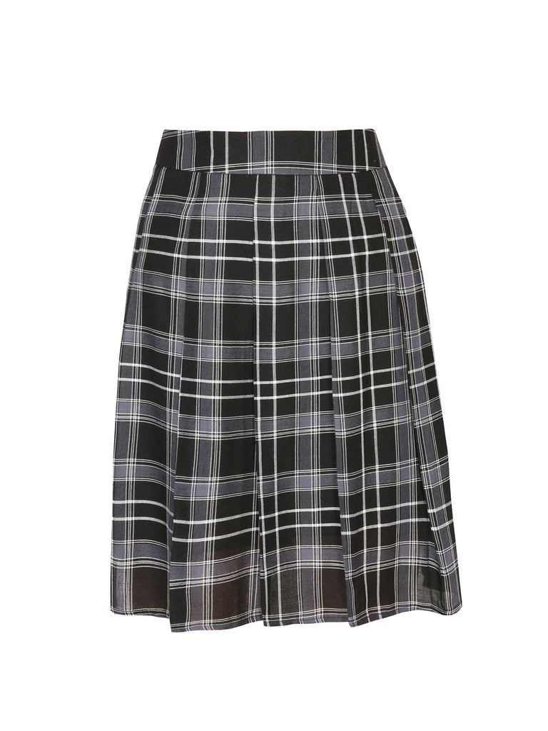 Mini-jupe plissée pour femme. Motif à carreaux noir au style tendance et féminin. Coupe confortable, idéale pour un look chic ou décontracté. Tissu léger offrant aisance et élégance au porté.
