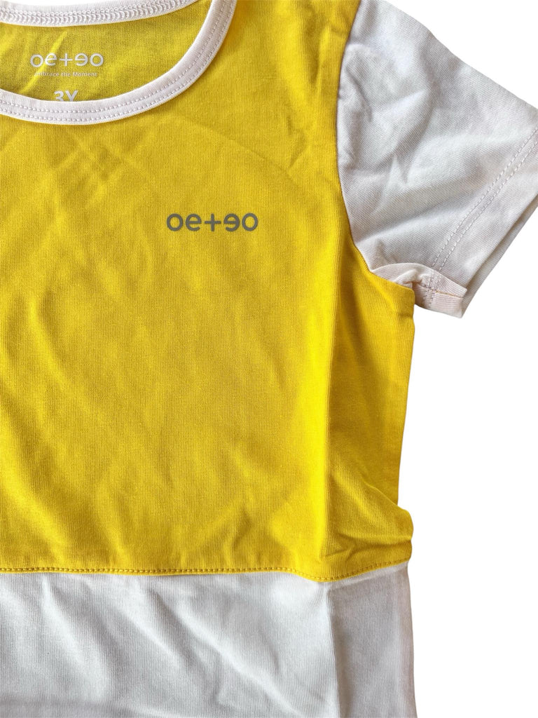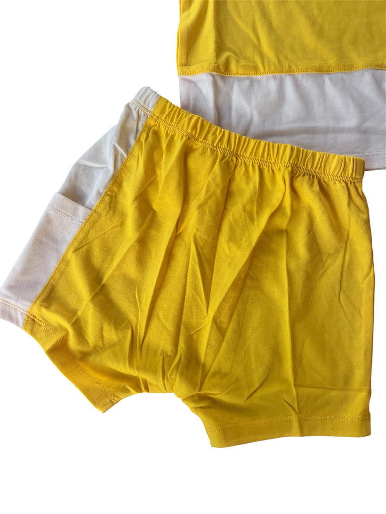 Ensemble comprenant un t-shirt et un short assorti en jaune et blanc. Confectionné en 100 % coton pour un confort doux et agréable. Idéal pour les journées chaudes.